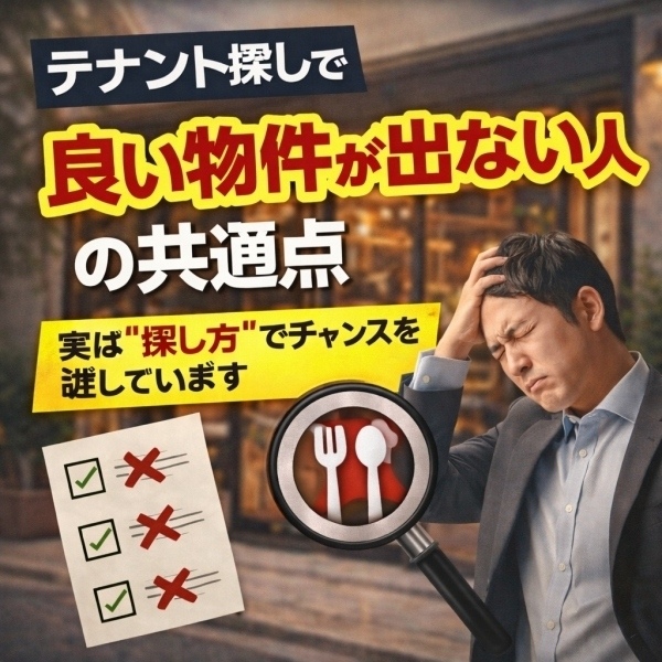 テナント探しで「良い物件が出ない人」の共通点—— 実は“探し方”でチャンスを逃しています「ずっと探しているのに、良い物件が出てこない」「タイミングが悪い..