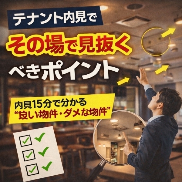 テナント内見で「その場で見抜くべきポイント」—— 内見15分で分かる“良い物件・ダメな物件”テナント内見は、「雰囲気がいい」「広さがちょうどいい」といっ..