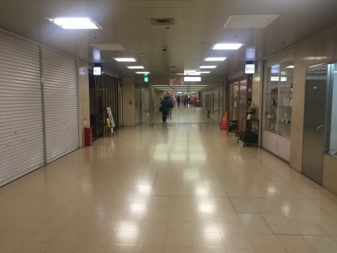 地下1階の南側通りは少し広めで、 人の往来も多めです。